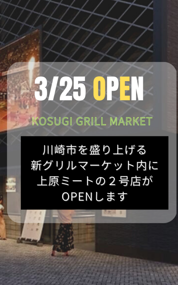 こんにちは! 今日は大ニュースの発表です。 上原ミートの2号店がめでたくOPEN予定です! 3月25日に武蔵小杉にオープンする「KOSUGI Gril...